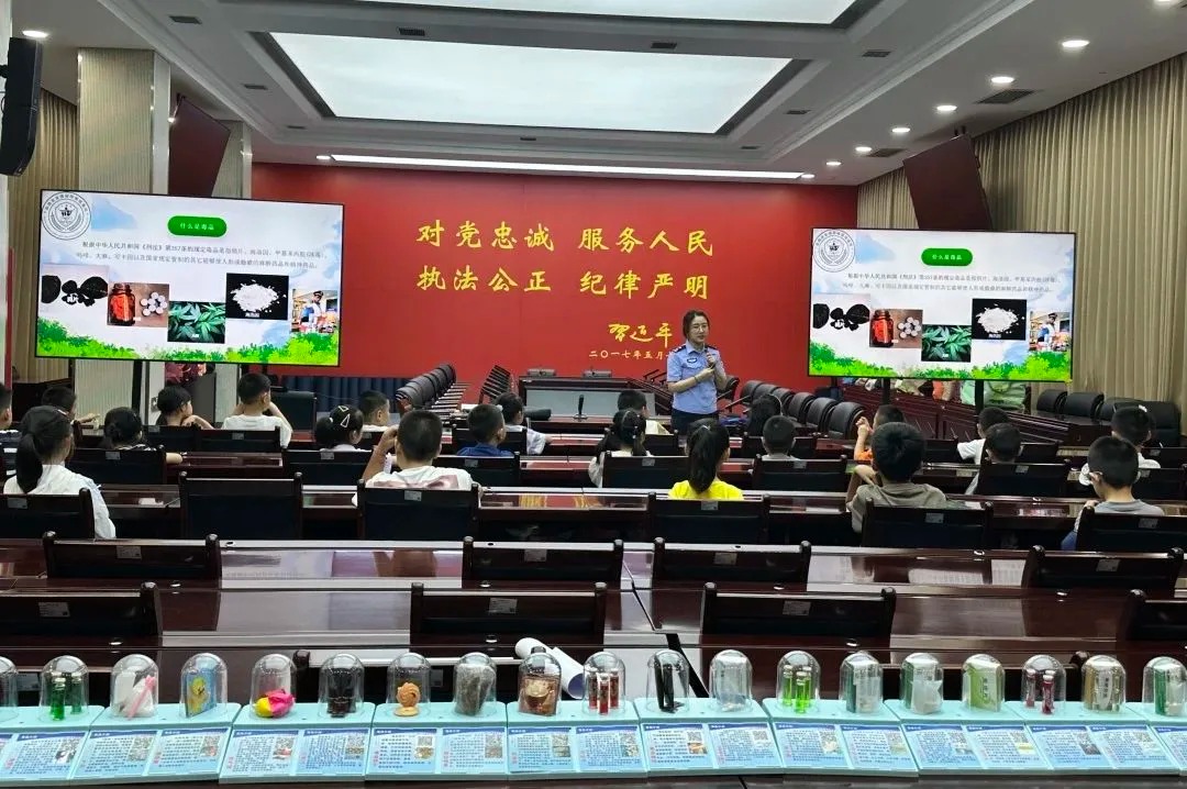 陕西省女强制隔离戒毒所“警花花”禁毒法治宣传队受邀为陕西省公安厅干警的子女们带来了一堂精彩生动的禁毒普法课,戒毒干警利用卡通视频、漫画、青少年涉毒典型案例等,向孩子们宣讲禁毒知识,一起玩“禁毒传声筒”“禁毒‘大富翁’”游戏,让孩子们在寓教于乐中加深对禁毒的认识,进一步提高识毒、防毒、拒毒能力。